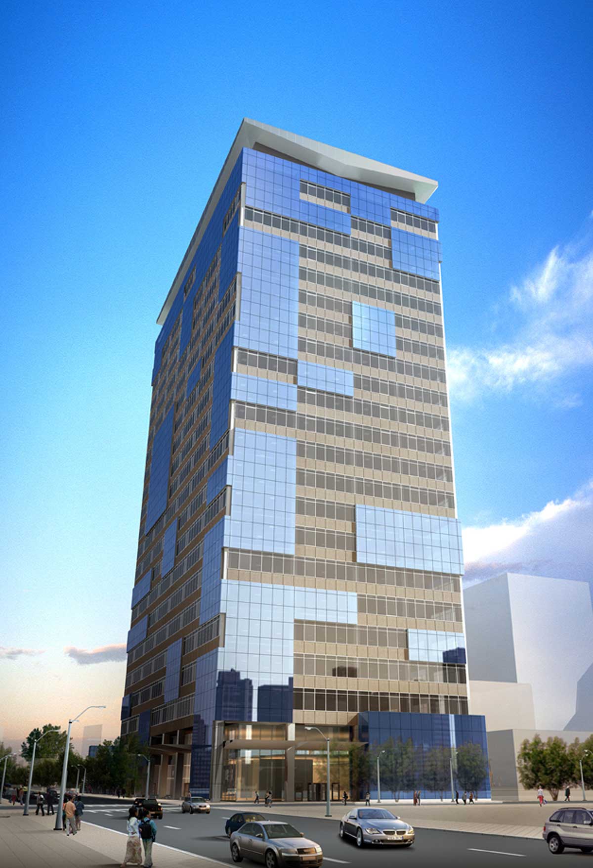 The very top of the building has been modified from the November renderings. The building cap, which screens rooftop mechanical equipment, has been made more substantial and provides for some nice nighttime uplighting. Here are three new perspectives of the tower: