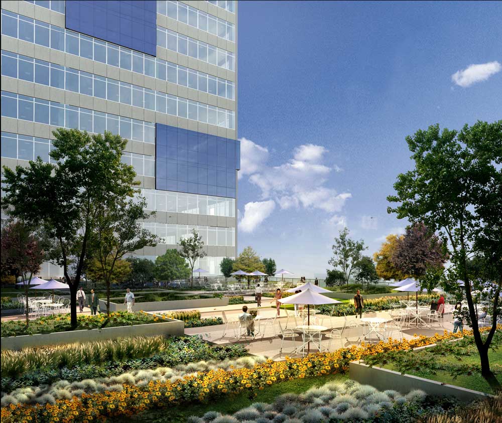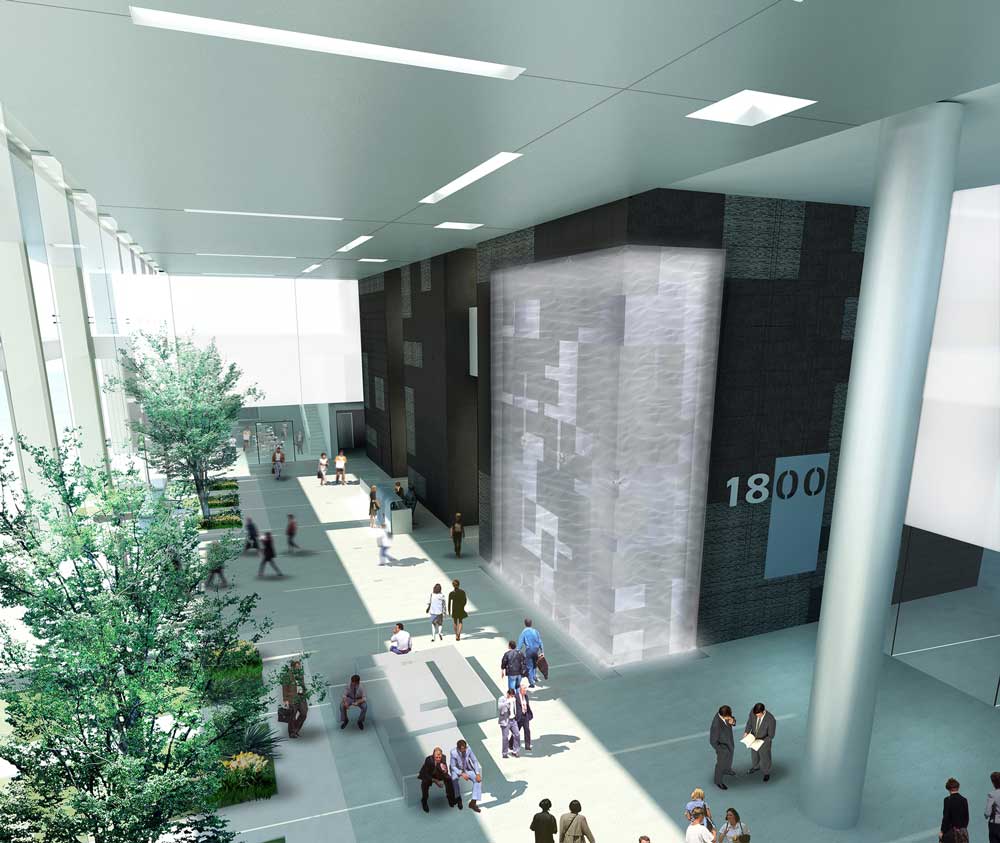 Here are a few other new images, including (left to right), parking garage rooftop garden, interior lobby, future skyline view:
