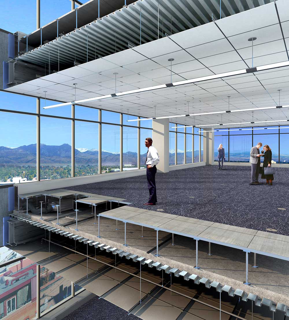 Finally, here’s one more image for all you engineering types out there. This LEED-certified building will feature modular concrete floors with an energy-efficient heating and air conditioning system supplied through the floor (instead of the ceiling) that is also modular and individually adjustable.