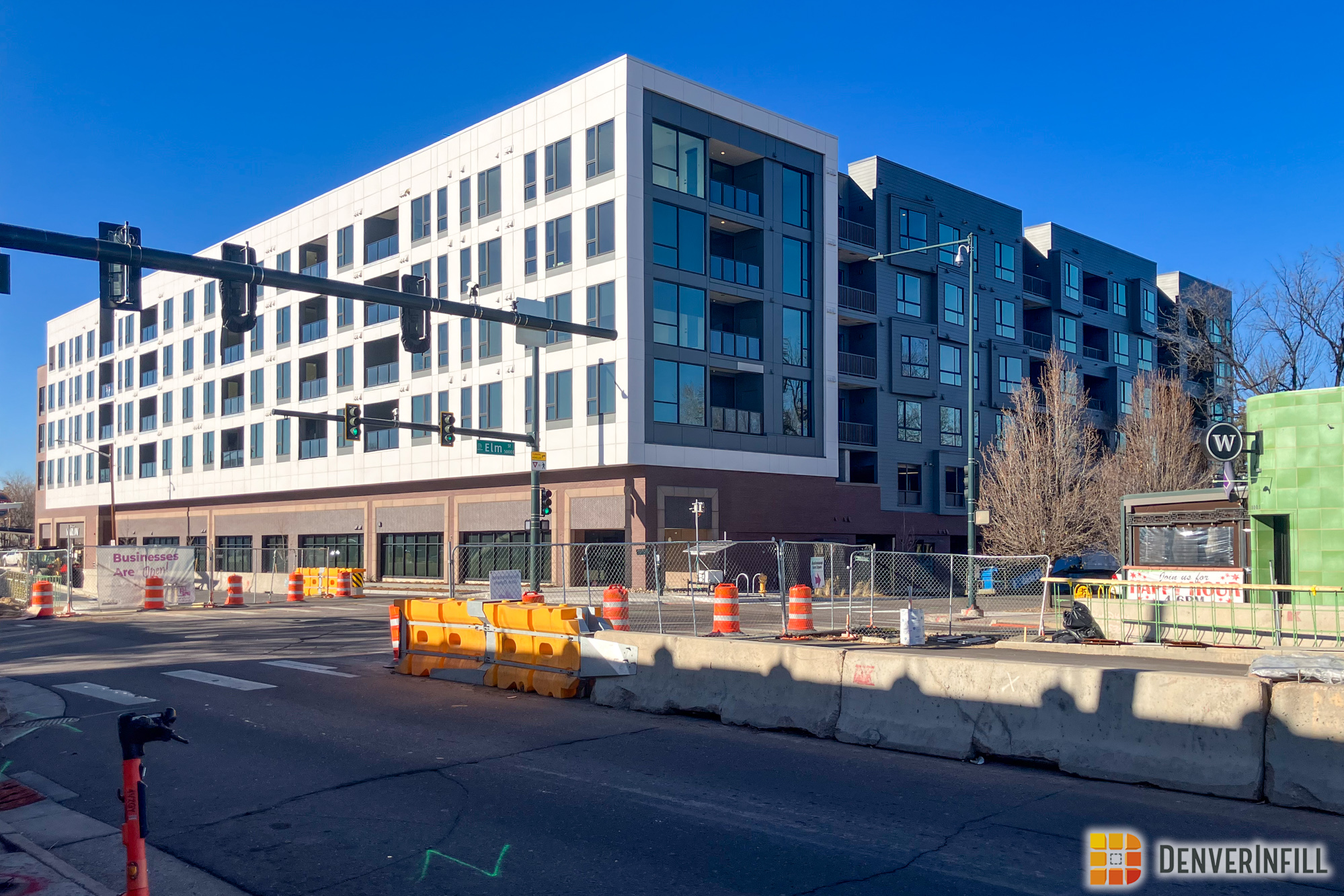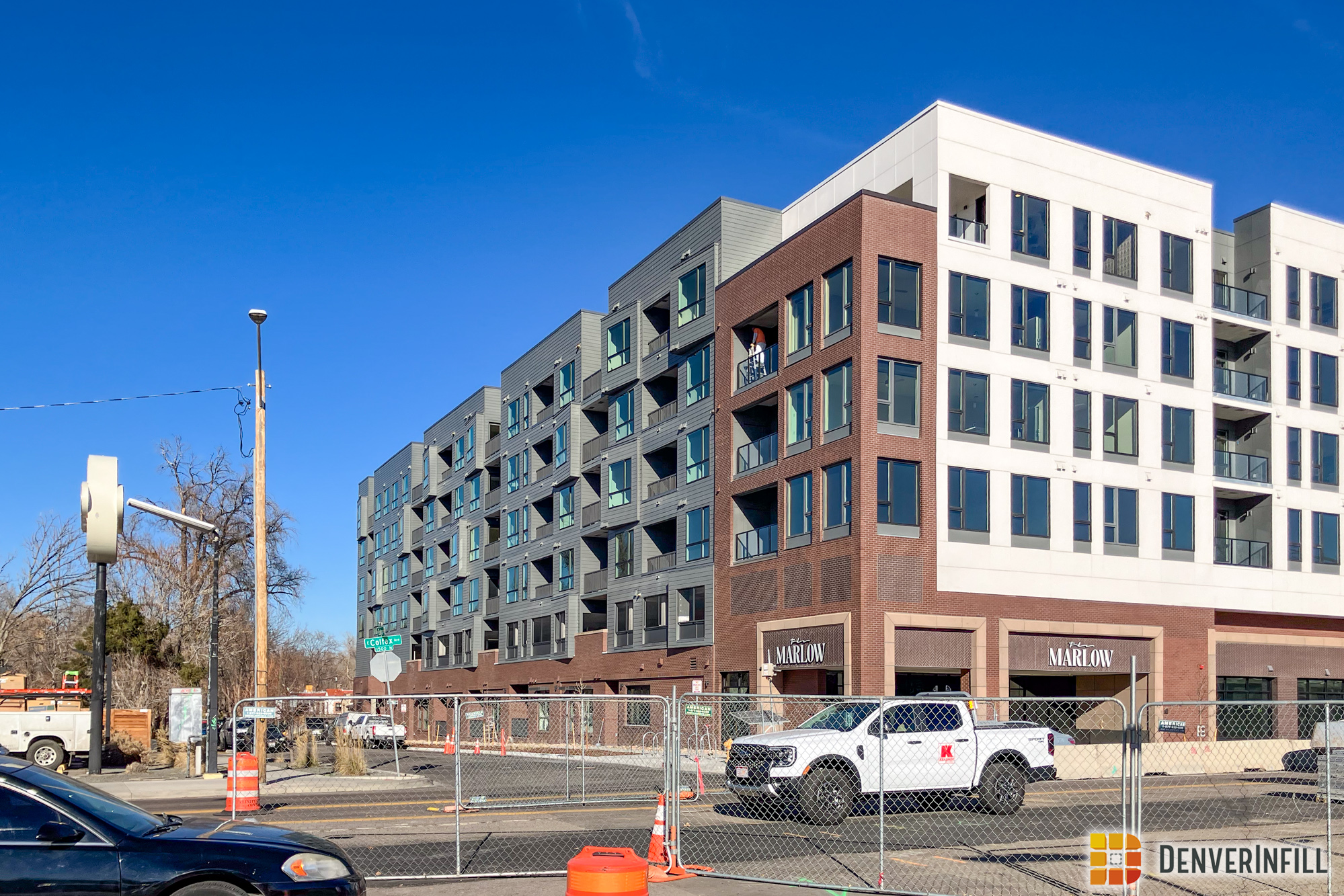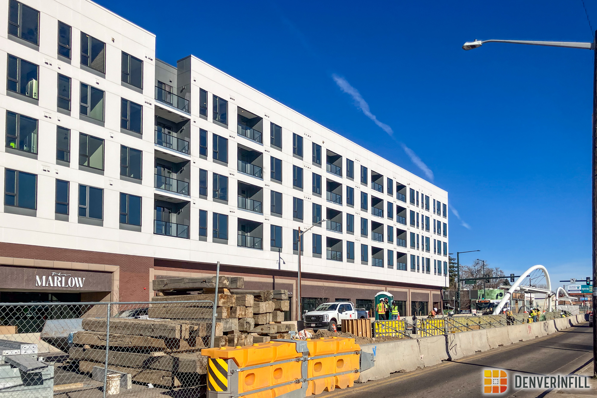 The Marlow. One of only a couple large multifamily projects underway east of Colorado Boulevard but within the I-70 and I-25 highways, the Marlowe is close to Marzwyk’s fine foods, at the site of a BRT stop, and brings new multi-family availability to South Park Hill, a neighborhood that, in a recent analysis of Denver Census data, had among the lowest new residents move there of any neighborhood in the city. The northwestern edge of the lot will gain a small community garden, but that will not get much light because it is covered up by the building from the south. Still, it’s a nice idea, and interesting to see the large-scale multifamily model come to South Park Hill. There are many more lots that would suit the treatment!