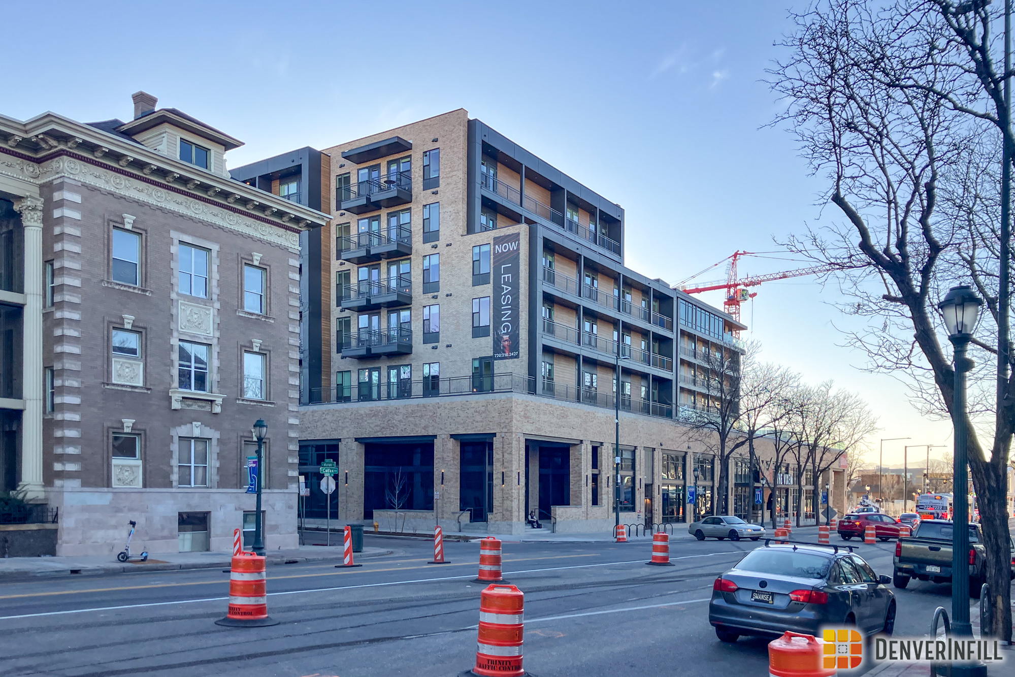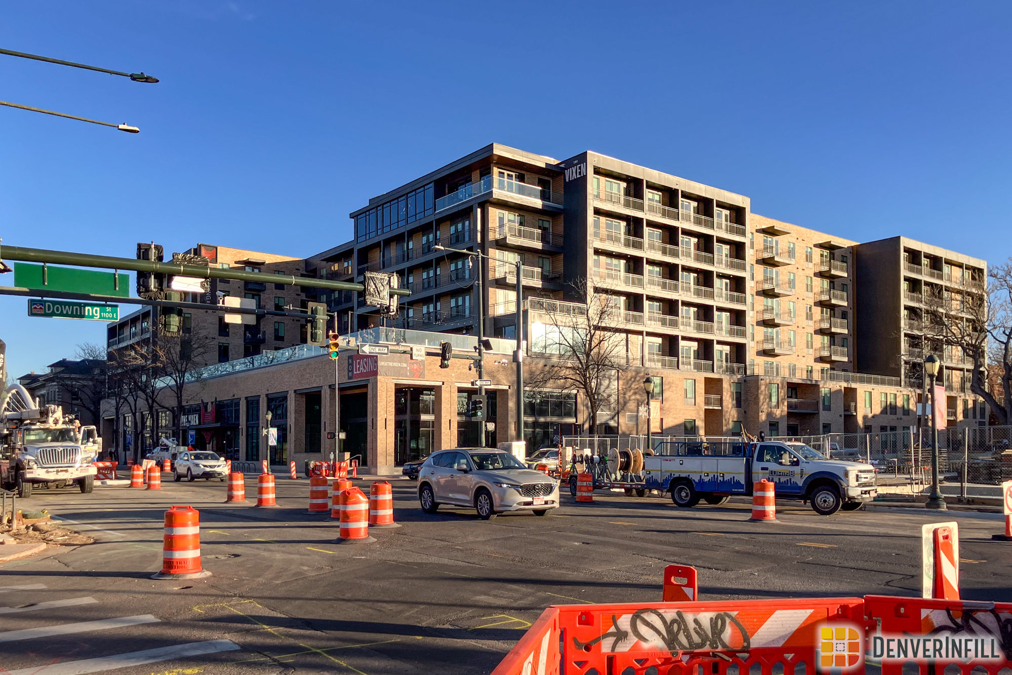 The Vixen (neé Karoi – Colfax and Downing). I often find myself surprised by the scale of new infill development as in the case of this completed multifamily development. Next to a number of attractive, historic multifamily homes from the early 1900s, facing a strip of well-loved, small-scale retail on the north side of Colfax, this development is a step change for the corridor, though redevelopment at this scale is nothing new for Denver, just new for East Colfax. Considering Colfax historically—from its beginnings as an elite residential corridor to its midcentury kitsch and wicked reputation—the changing uses of the street from residential to commercial, the accompanying change in scale for motorist convenience, must have been pretty jarring for someone who was born and raised in one of those now vanished mansions. So change is really the core fact of East Colfax, is my point. And there are more projects coming to East Colfax, including one literally across the street, that further the block-wide, new-build multifamily context as part of the corridor’s next step in history. So welcome to Colfax, new neighbors!